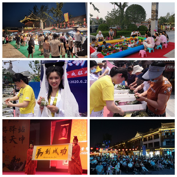 一场狂欢怎能少得了美食,鲜嫩可口的小龙虾、香飘四溢的烧烤、特色小吃网红美食,众多饕餮盛宴为市民游客带来了一场美食狂欢;古戏台和驿站大舞台轮番上演的说书表演、川剧变脸、豫剧曲剧等民俗表演,让市民游客近距离感受传统民俗文化的魅力;国学馆、非遗体验馆及非遗研学馆,带你体验中华传统文化,感受国学经典魅力;吃粽子比赛、儿童制作香包大比拼带市民游客充分感受端午的节日气氛,体会传统节日的文化魅力。