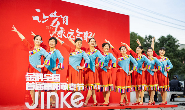 2020年10月25日,金科在重庆、遵义、成都、西安、长沙、郑州、柳州、无锡、济南九座城市同步启动“金科全国首届重阳敬老节”。上万名业主、数十个老年艺术团体齐聚一堂,同享金科特别呈现的美好生活仪式。除了精彩的歌舞秀汇演外,金科还在全国活动现场统一发布“中国首个社区敬老宣言”,将“敬老”作为邻里文化的重要公约付诸社区实践。