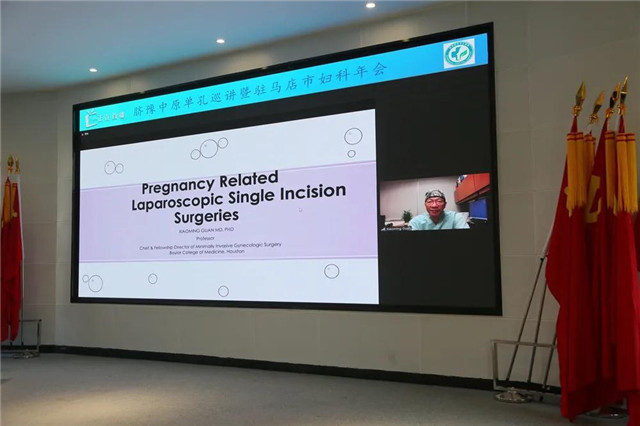 大会名誉主席美国贝勒医学院关小明教授通过线上直播的形式,感谢各位妇产科同仁对“单孔腹腔镜技术巡讲”的参与和支持,预祝大会圆满成功,希望我市单孔腹腔镜技术的发展越来越好。