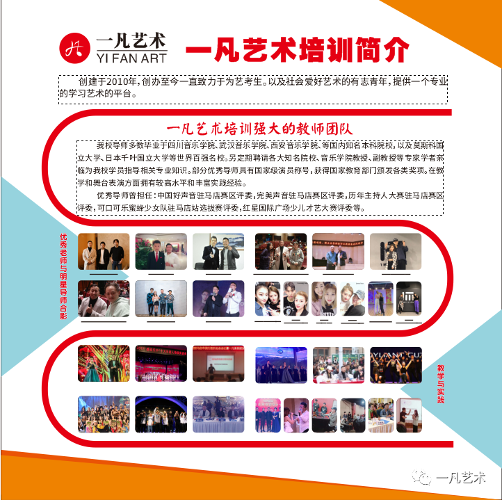 部分优秀导师具有国家级演员称号,获得国家教育部门颁发各类奖项。在教学和舞台表演方面拥有较高水平和丰富实践经验。优秀导师曾担任:中国好声音驻马店赛区评委,完美声音驻马店赛区评委,历年主持人大赛驻马店赛区评委,可口可乐蜜蜂少女队驻马店站选拔赛评委,红星国际广场少儿才艺大赛评委等。