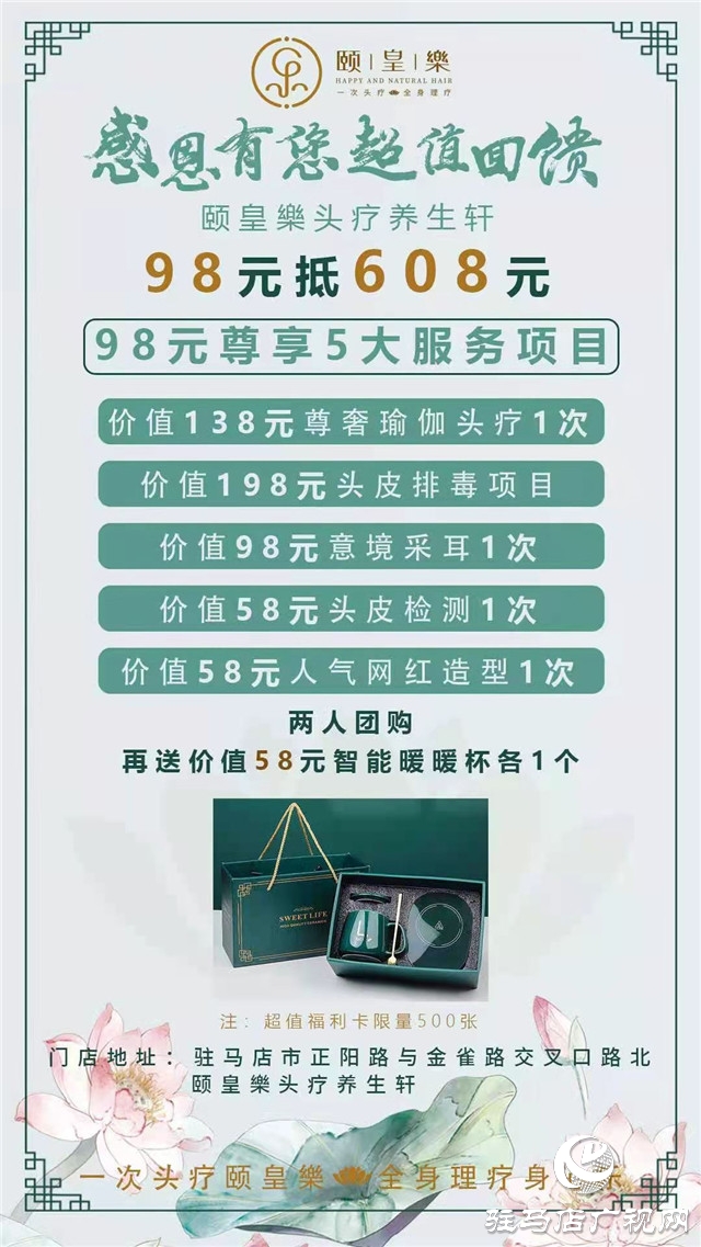 红缘公司的兄弟品牌颐皇樂中医头疗养生项目全面启动,以“弘扬养生文化,造福人类健康”为使命,成为了大健康领域的养生先行者。为全市人民提供了健康养生的好去处,让大家美在颐皇樂,健康在颐皇樂,而颐皇樂在驻马店市区的品牌形象店也即将盛大开幕!欢迎各界朋友前来指导参观体验。