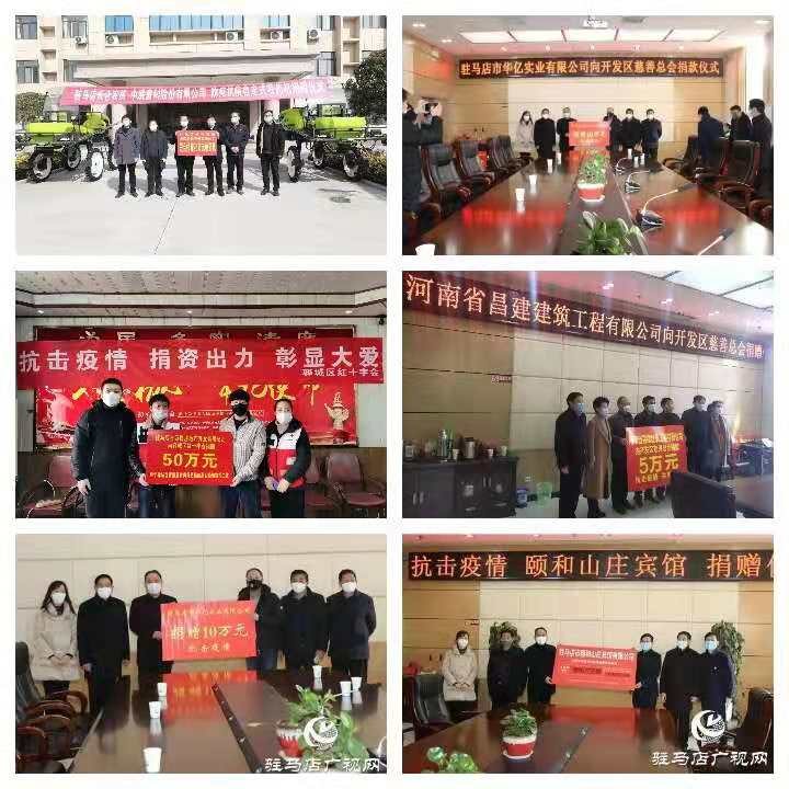 携手同心,共抗疫情。一场突如其来的新冠肺炎疫情让2020年不再平凡,令每一位商会会员刻骨铭心。驻马店市上蔡商会第一时间向会员企业发出《关于做好新型冠状病毒疫情防控的倡议书》,号召会员企业积极捐款捐物。其中会长单位鹏宇投资集团在2020年年初为驻马店市红十字会捐赠300万元,为驻马店市中心医院捐赠200箱消毒液和20000个口罩;副会长吴金长、翟伟光、李占国、翟廷振、李三,常务理事陈富春等会员企业家先后捐资捐物共计76.5万元用于疫情防控,为抗击疫情贡献出自己的力量,彰显出民营企业家回报社会的责任与担当。