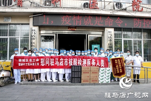 下午4时20分,魏道德和医护人员刚刚送走康乐托老院的客人,又迎来了驿城区总工会、驿城区卫健体委工会的同志,他们送来了牛奶、面包、水果等慰问品。