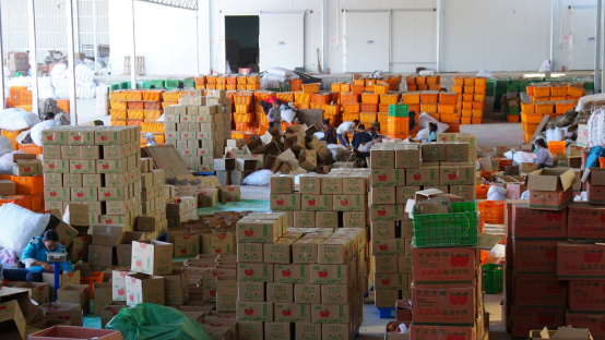 △盐源拼多多商家何勇的仓库,高峰时这里一天发货七、八万件苹果到全国各地。