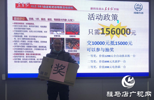 会后的购机抽奖活动把会议推向高潮,机手们个个喜气洋洋,志在必得,大家不但定购了自己满意的东方红收割机,还抽中了全自动洗衣机、微波炉等奖品。活动在欢乐祥和的气氛中拉下帷幕。