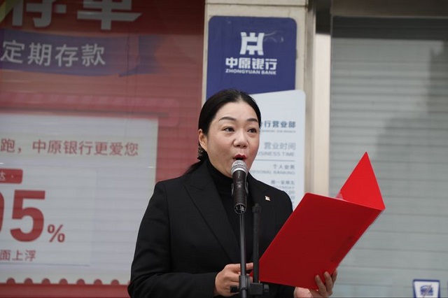 中原银行驻马店分行副行长孙莹莹表示本次举行中原银行驻马店分行个人(小微)贷款受理中心揭牌仪式,不仅代表着中原银行驻马店分行在深入履行社会责任、积极贯彻普惠金融、支持小微商户发展上永不停歇前进的脚步,同时也标志着中原银行在服务体系上更加完善,服务能力和服务水平迈上了一个新的台阶。