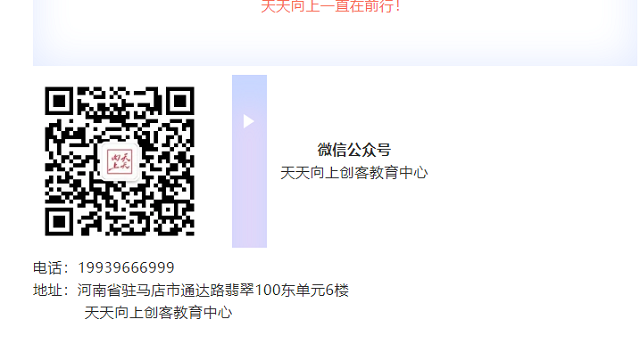 天天向上创客教育中心秉承STEAM教育理念,致力于做更好的青少年创客教育。通过实际应用场景,结合深入浅出的系列课程及系统赛事,形成一套专业的创客教育与人工智能教育解决方案,培养引领未来的创新型人才。