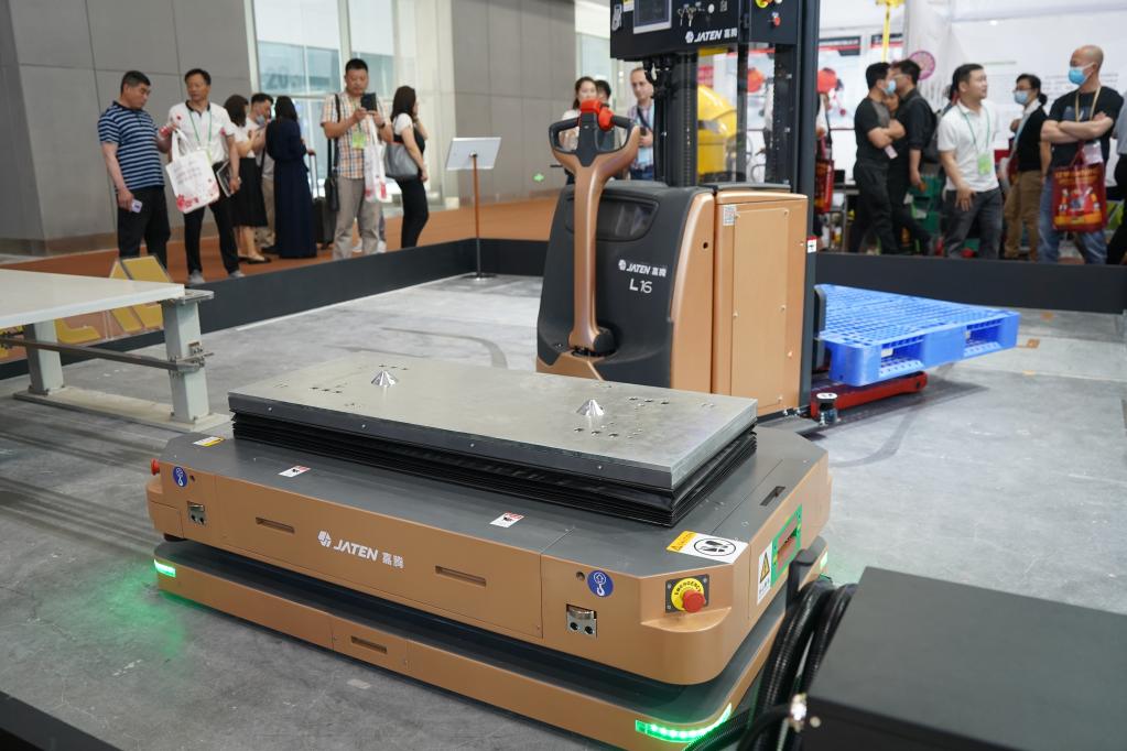工业自动化和智能制造展馆内,一台无人驾驶叉车正在展位狭小的空地上灵活运行、精准“搬运”,引来不少人驻足围观。