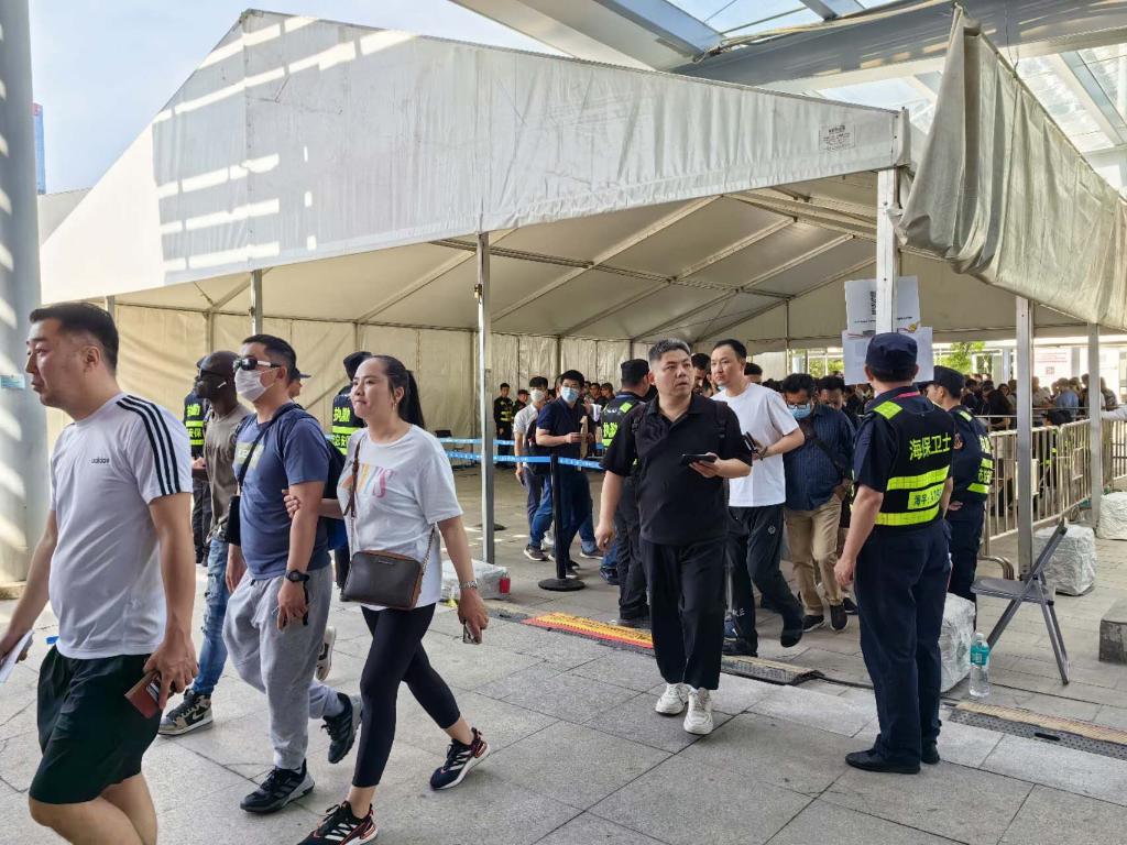 这是时隔三年后,广交会首次全面恢复线下举办。入口处排着长队的人群,如潮水般缓缓向前涌动。