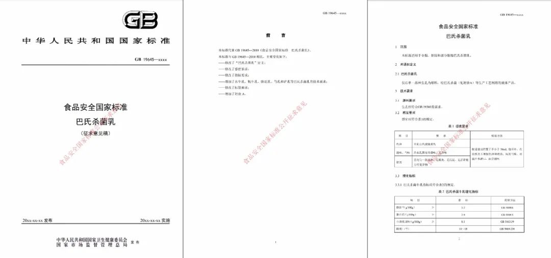 《食品安全国家标准 巴氏杀菌乳》(征求意见稿)是对GB19645-2010的修订: