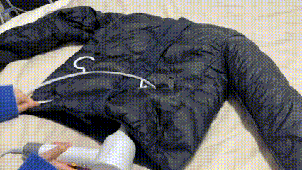 别急着扔,可以试试把领口折叠起来,一边用吹风机“冷风模式”从衣服下摆往里吹,一边用衣架多多拍打羽绒服,真的有用。