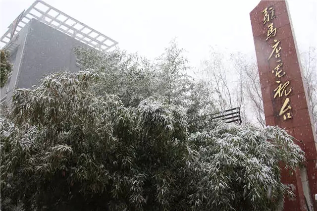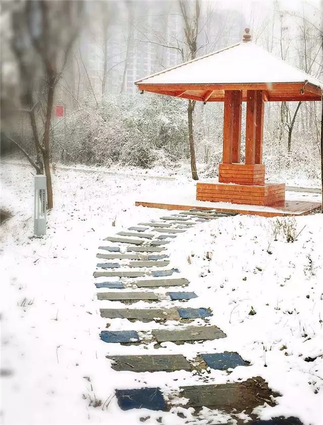 不一会,雪花就轻轻地覆盖了整个大驻马,连路边游园的亭台都让这雪花修饰的如此意境不凡。