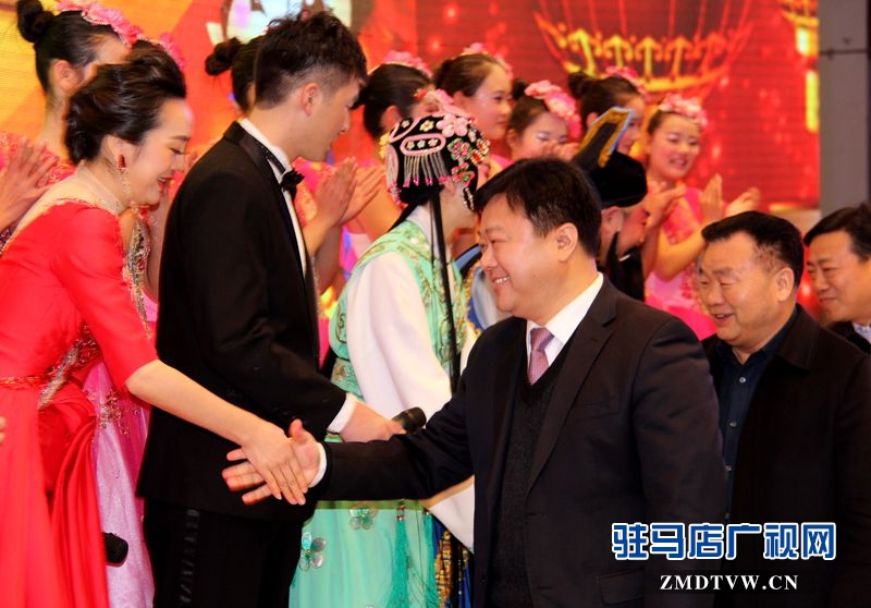 驻马店人民政府市长陈星、市政协主席刘军甫、市政府常务副市长张昕、市委宣传部部长戚存杰上台与演职人员握手。