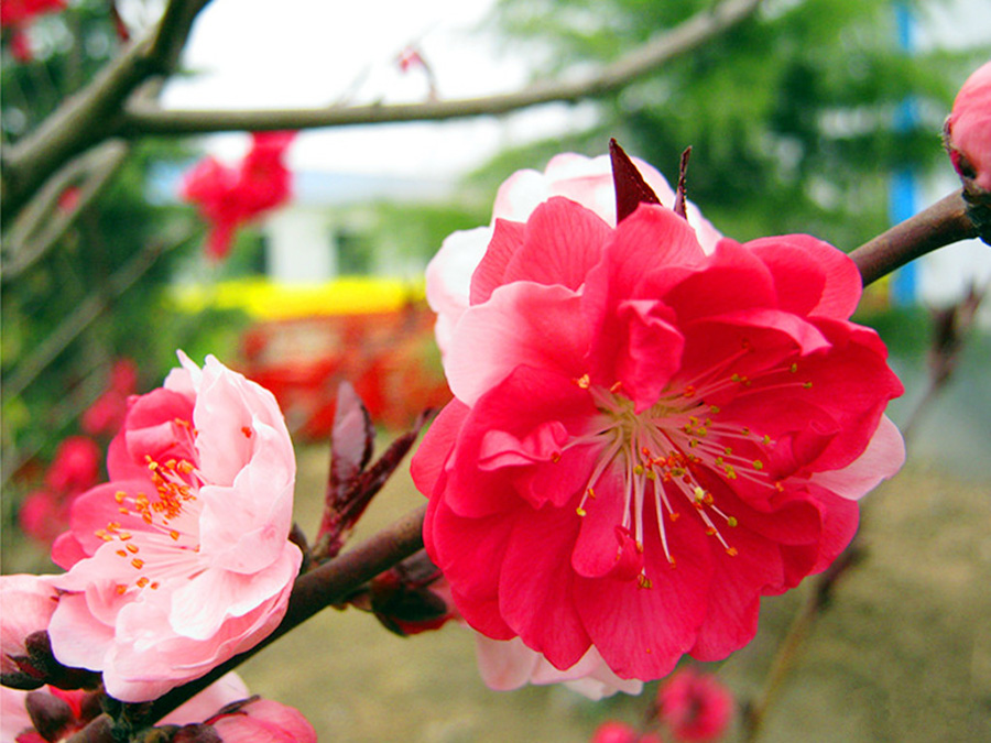 红的桃花,白的梨花,黄的油菜花,一幅幅立体的山水画图映入眼帘。