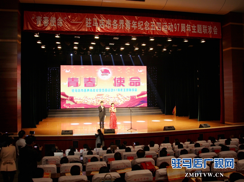 4月27日下午,为纪念伟大的五四运动97周年、庆祝五四青年节,由共青团驻马店市委主办的“青春使命”——驻马店市各界青年纪念“五四”运动97周年主题联欢会在市群艺馆隆重举行。