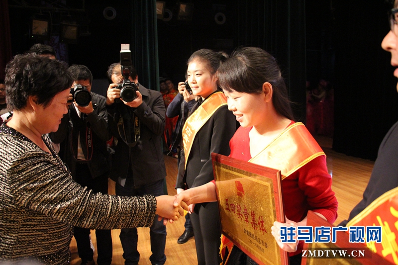 市政协副主席赵瑛为“驻马店青年五四奖章集体”获得者颁奖