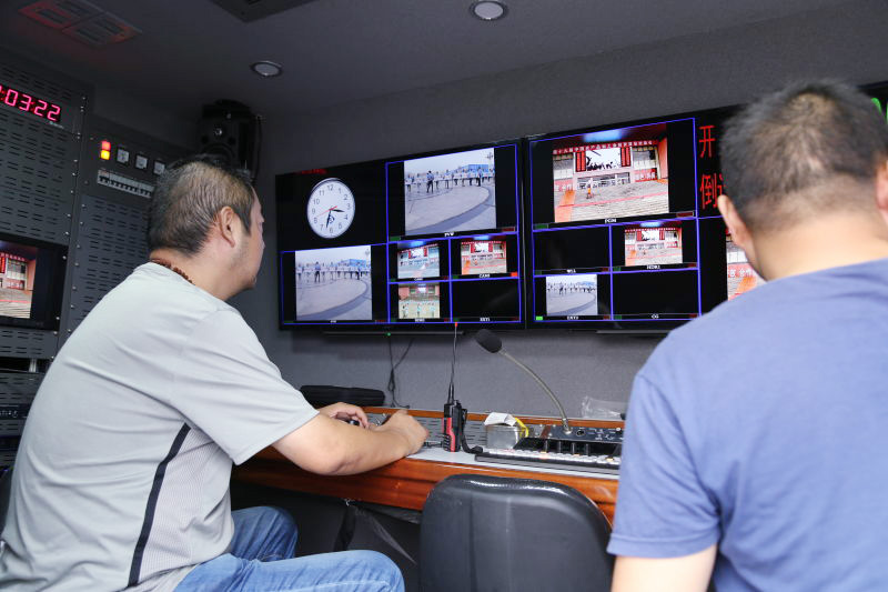 驻马店广播电视台技术中心工作人员现场录制开幕式