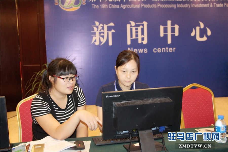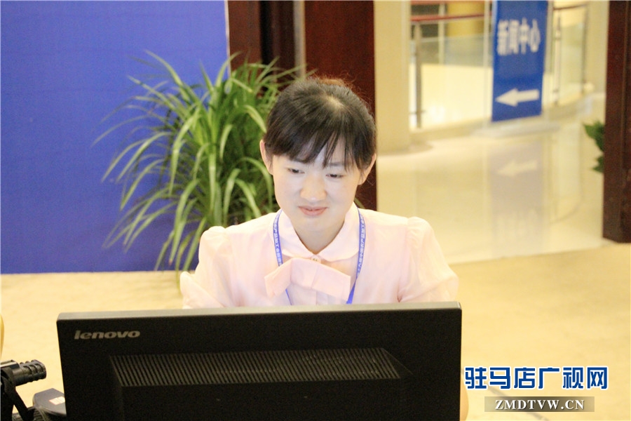 驻马店广播电视台记者在大会新闻中心编写稿件
