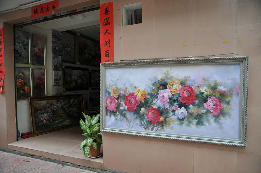 大芬村在国内外都已经是声名远扬,对于它的相关资料可以百度下。在深圳待了近两年的时间却一直没有来过,昨日独自来到这里进行了我所谓的探寻式闲逛…… 这次是闲逛的心态,对期间种种也没有做过任何的预想猜测,对线路都不熟悉,去到那里像在发现自己未见的新大陆那般…… 早上10点到晚上9点一直穿行在各个小巷画廊,没有了时间的限制想怎么玩就怎么玩…… 走的比较慢,一天交谈过的画师只有八九个,现在就逐一的看吧……