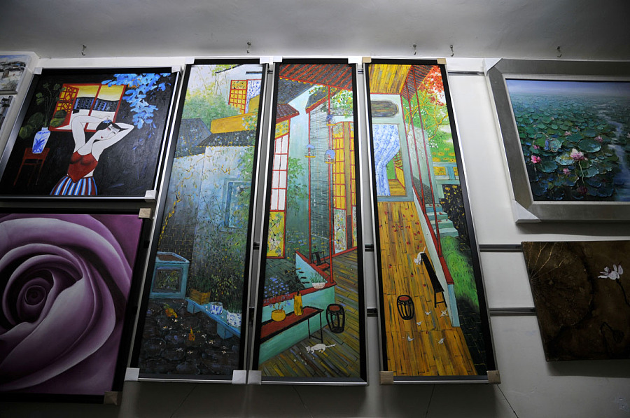 9完成的商品在晾干等待画商来收画