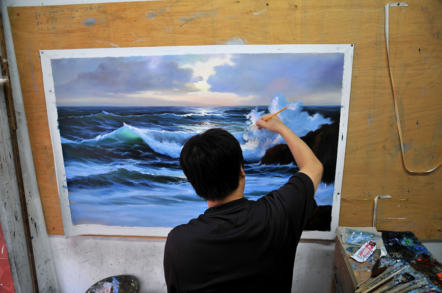 25这位画师在拨弄他的浪潮……这些画虽说没什么太大的收藏价值,但至少有这么些人在为之付出,还是值得大家去驻足欣赏的