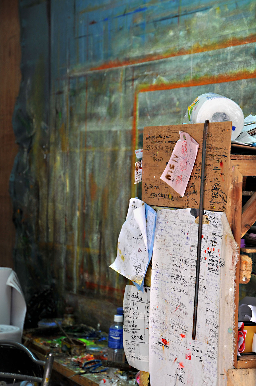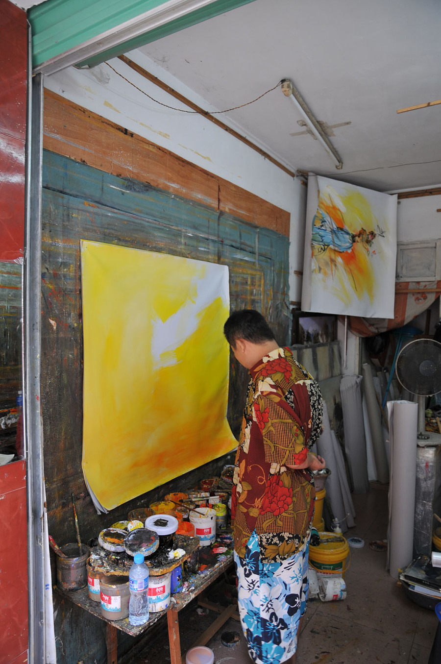 23他是个很有想法。上进有远见的人,从小画画,在大芬村画画也好多年了,办公室是他自己装饰的,很有味道 看下边这个窗户就了解的 他几幅表现地震和环保的画还是有震撼力的,挺喜欢,在征得他同意下拍了两张,表示尊重就不放上来了