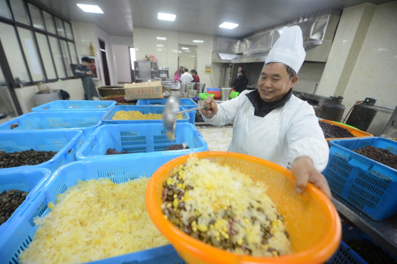 1月4日,内蒙古呼和浩特市玉泉区清泉街社区志愿者为社区居民盛腊八粥。当日,呼和浩特市玉泉区清泉街社区举办“温暖腊八粥 浓浓邻里情”活动,喜迎即将到来的“腊八节”。新华社发 丁根厚 摄