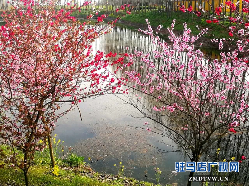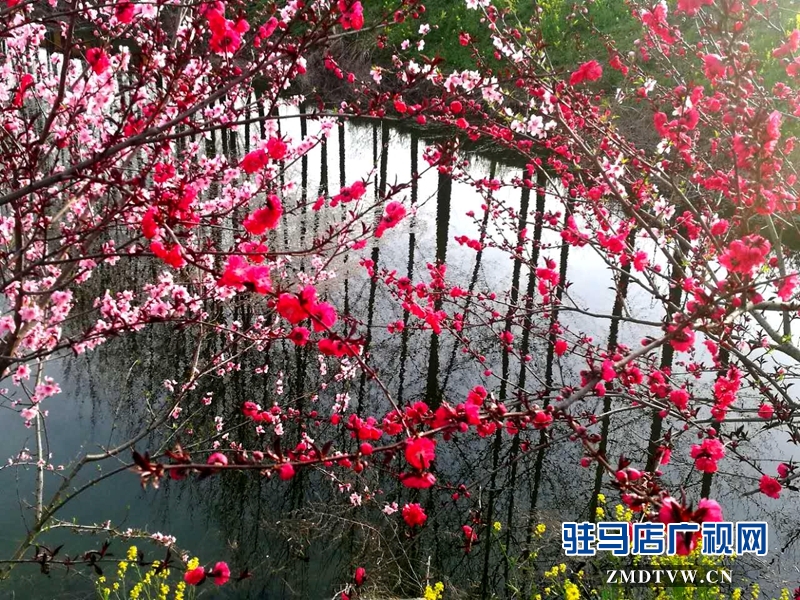 桃花粉色透着红, 菜花金黄耀眼明; 青涩河水映倒影,游客随景望返程;练江河畔景迷醉,花草粘衣也留情;在过时日蜂蝶舞;穿梭丛林别样情。(摄影/张斌)