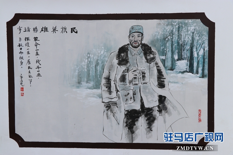 墙体画为民族英雄杨靖宇,利用典范人物为群众做榜样,彰显民族大义。