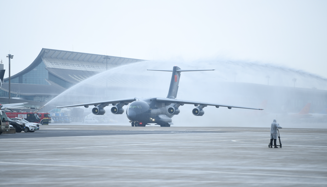 2022年9月16日,第九批志愿军烈士遗骸回国专机运—20降落在沈阳桃仙国际机场。人民网记者 邱宇哲摄