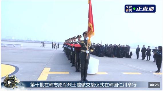 举行第十批在韩中国人民志愿军烈士遗骸及遗物交接仪式