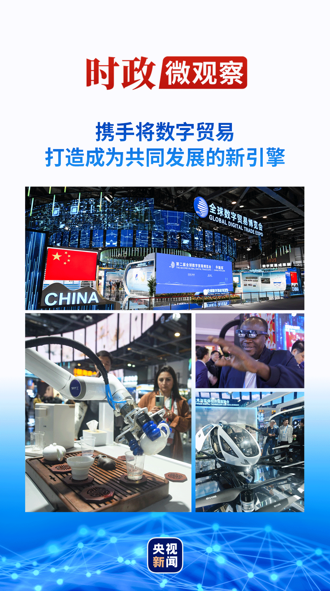 习近平主席在向第二届全球数字贸易博览会致贺信时表示,希望各方充分利用全球数字贸易博览会平台,共商合作、共促发展、共享成果,携手将数字贸易打造成为共同发展的新引擎,为世界经济增长注入新动能。