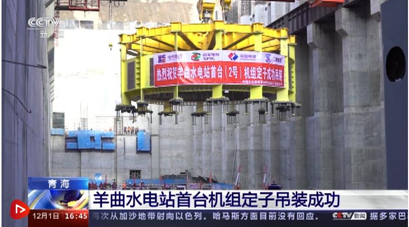 定子,是水轮发电机组中核心部件之一,是将机械能转换成电能的关键设备。11月30日,位于黄河上游的青海羊曲水电站首台机组定子顺利吊装成功,标志着项目机电安装工作取得阶段性胜利,为水电站实现2024年投产发电的目标奠定基础。