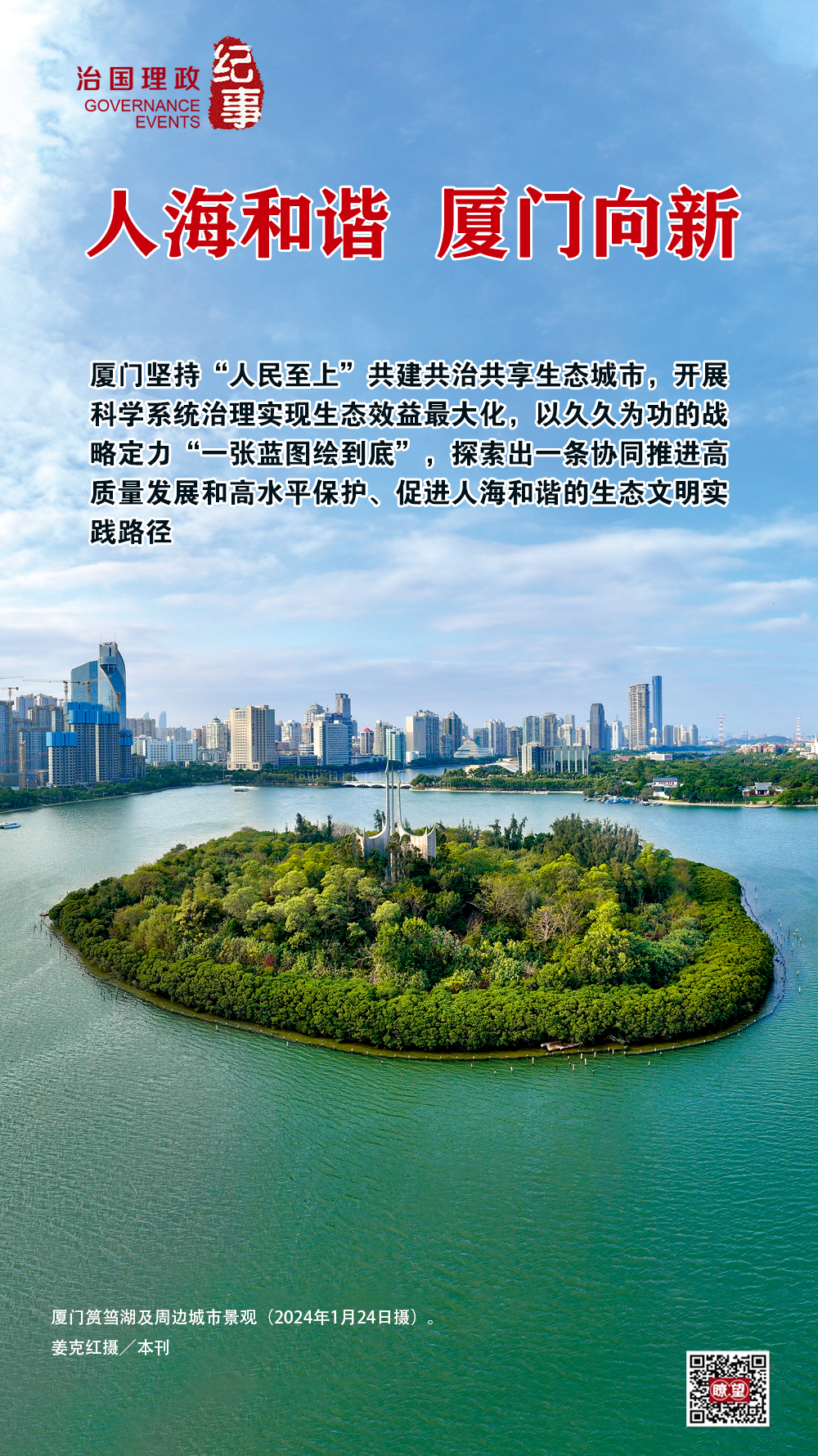 从习近平同志亲自谋划、亲自部署、亲自推动的筼筜湖综合治理出发,厦门坚持“人民至上”共建共治共享生态城市,开展科学系统治理实现生态效益最大化,以久久为功的战略定力“一张蓝图绘到底”,探索出一条协同推进高质量发展和高水平保护、促进人海和谐的生态文明实践路径。
