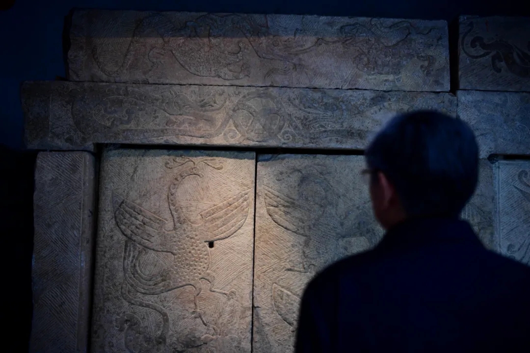 在南阳汉画馆内拍摄的画像石。新华社记者 冯大鹏 摄
