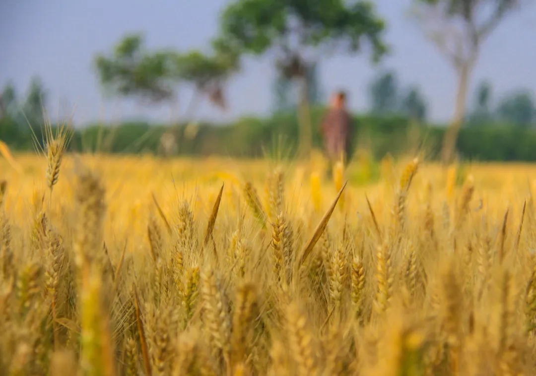 在河南省南阳市红泥湾镇大叶岗村,农民在田间查看小麦长势。新华社发(高嵩 摄)
