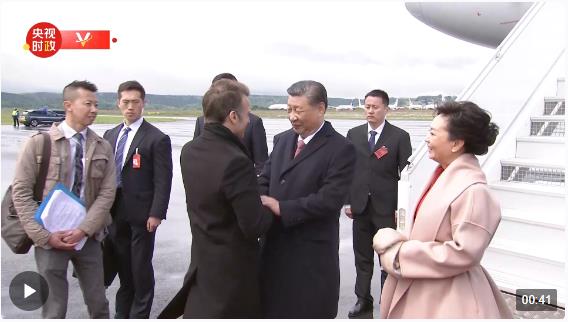 当地时间5月7日中午,国家主席习近平和夫人彭丽媛乘专机抵达法国塔布,法国总统马克龙夫妇等在舷梯旁热情迎接。