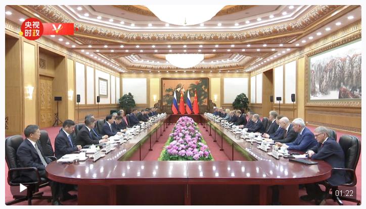 普京说: “今年是俄中两国建交75周年。明年我们还将迎来另一个重要的周年——世界反法西斯战争胜利80周年,我们真诚希望进一步加强俄中在各领域的多方面合作。”