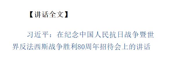习近平指出,80年前,中国人民经过14年浴血奋战,彻底打败日本军国主义侵略者,宣告世界反法西斯战争的完全胜利。这是中华民族从近代以来陷入深重危机走向伟大复兴的历史转折点,也是世界发展的一个重大转折点。这一伟大胜利,是中国人民同反法西斯同盟国以及各国人民并肩战斗取得的。对支援和帮助过中国人民抵抗侵略的外国政府和国际友人,中国政府和中国人民永远不会忘记。