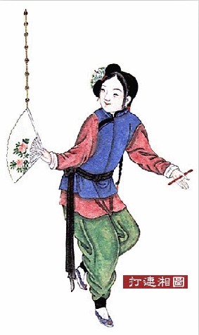 又名《打花棍》、《金钱鞭》、《霸王鞭》,是北方流行的民间歌舞。舞者化装扮成旦、丑等角色,手持"霸王鞭"表演。清毛奇龄《西河词话》:"金作清乐,仿辽时大乐之制,有所谓连厢词者,则带唱带演"。清代民间画家所绘《北京民间风俗百图》中有"打莲湘",文字说明为:"此中国打连湘之图也。其人乃戏班优〔伶〕扮成女子,手拿竹板、彩扇,用竹竿一枝,挖小孔,安铜钱数个,名为霸王鞭,在手中飞舞,或竹板上独立,口唱歌词,名曰'打连湘'"。