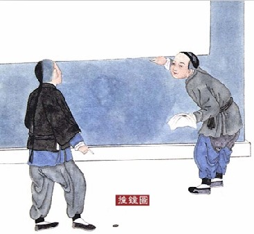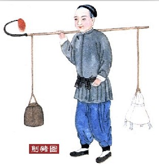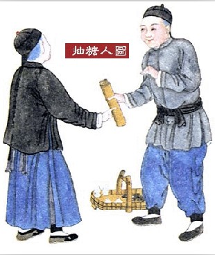 其人用白糖人物禽兽,出售时用竹签32根上面刻上点数放入竹筒,让买者抽取,如成付为胜不成付为输。