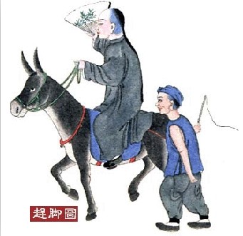 类似如今的出租,赶脚的把驴拴于城根,有需要者就骑上它,赶脚的在后面紧随其后。