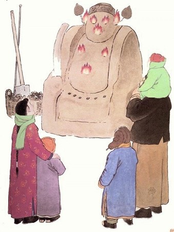 自正月十三到十五,北京城热闹非常,晚间看灯,放焰火,地安门外鼓楼前这一带大店铺家家放“盒子”,有的还把大主顾请到二楼去看花,除此以外西皇城根儿北头儿路北有一座城隍庙,每年灯节有火判儿供人观看。所谓火判儿实际上就是一个砖砌的大炉灶,高约四五尺,外形像一个袒腹而坐的人,头上戴一顶双翅的纱帽,帽子是一个大砂锅,右手抱一牙笏,牙笏是一块铁板,生着火以后火焰从耳口鼻眼、肚脐和两乳冒出,围观的人很多。这也是灯节观灯看花之外的另一景观。火判一晚上要烧数百斤煤,都是由个人和商号捐的,三十年代末,没人捐资火判儿也就没有了。