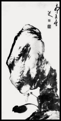 有一副现存于江苏泰州博物馆的《秋花危石图轴》,画中巨大的石头摇摇欲坠,山人用浓墨重笔,涂出了石头力压千钧的力道,但在巨石之下,却用淡墨画了一朵小花,长着一片叶子,巨石与花朵,构成了相当大的反差,但花儿依然从容地绽放。