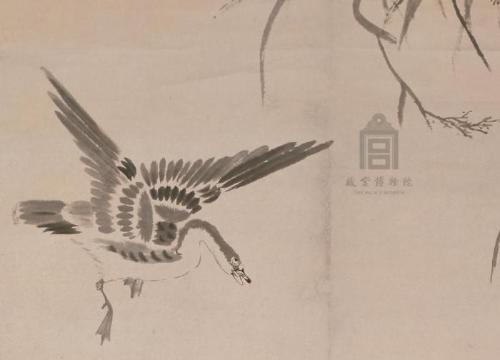 《朱耷杨柳浴禽图轴》局部。 现存故宫博物院