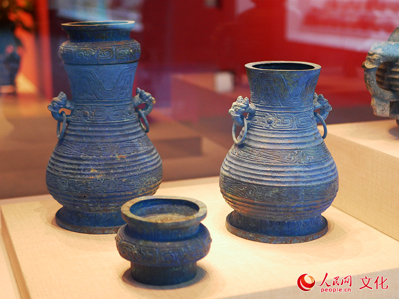 “回归之路——新中国成立70周年流失文物回归成果展”上的曾伯克父铜壶。人民网 韦衍行 摄