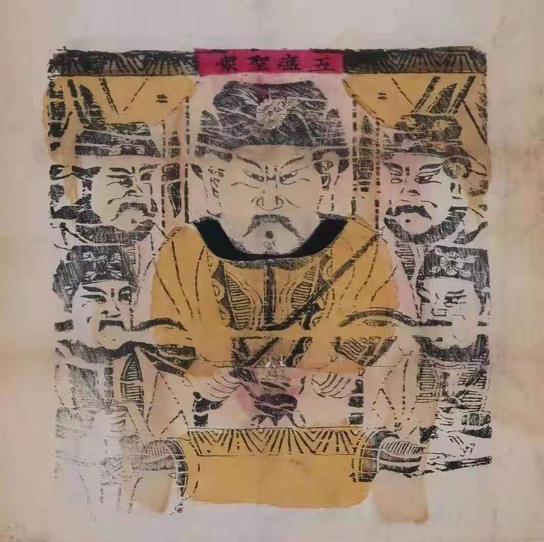 清末民间纸马《五瘟圣众》,民众在瘟疫爆发时祭祀的五位瘟神。