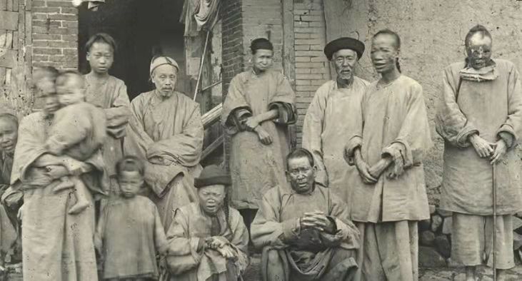 1890年威廉姆·班尼斯特拍摄的清末一个麻风村里的麻风病人。