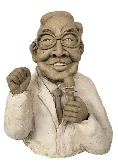 “我的这件作品里,他面带微笑,右手握拳。我想表现的就是他勇于担当的使命感与必胜的信念”,广州市文联民间艺术家文艺志愿服务队队长、省文史馆员、广东省锃风艺术研究院院长王增丰在谈及自己以钟南山院士为主题的漫塑《信心》时说。