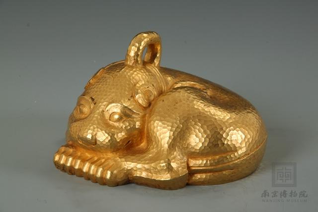 金兽重达9100克,含金量达99%,是迄今我国出土文物中最大最重的金器。它究竟是什么动物?有人认为是老虎、有人认为是狮子、有人认为是豹子。金兽是青铜铸造工艺与金器锤击工艺相结合的产物,这种制作手法极为少见。